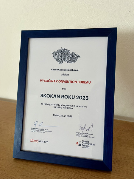 Kraj Vysočina se pro rok 2025 stal nejúspěšnějším regionem České republiky z hlediska rozvoje konferenční a firemní turistiky v České republice. Kancelář Vysočina Convention Bureau obdržela od národní agentury CzechTourism titul Skokan roku 2025. Ocenění potvrzuje, že Vysočina není pouze cílem rodinných výletů, ale stává se významným hráčem i na poli kongresové turistiky.